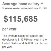 컴퓨터공학을 전공하고 있다면 데이터베이스는 필수로 공부해야하는 요소입니다. 데이터 없이는 컴퓨터 기술은 팥 없는 찐빵과 같습니다. 컴퓨터가 연산을 하려면 데이터가 필수이지요. 그렇기에 해당 기술과 관련된 인력은 기업이라면 필수로 요구하고 있습니다. 미국만 보더라도 평균임금이 아래와 같이 높은 것을 알 수 있습니다.